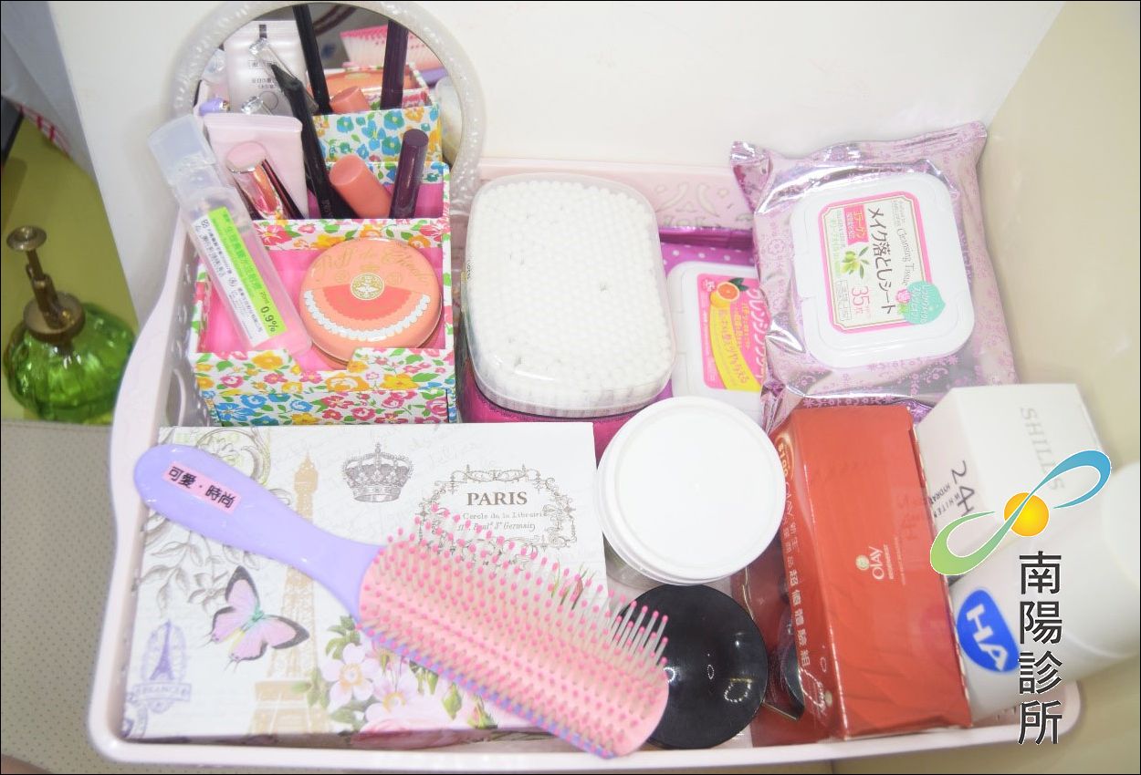 還有提供術後、美麗治療後的醫美級保養品(有添加玻尿酸的化妝水等)、化妝品不管是底妝、彩妝、眼妝、腮紅等都應有盡有!