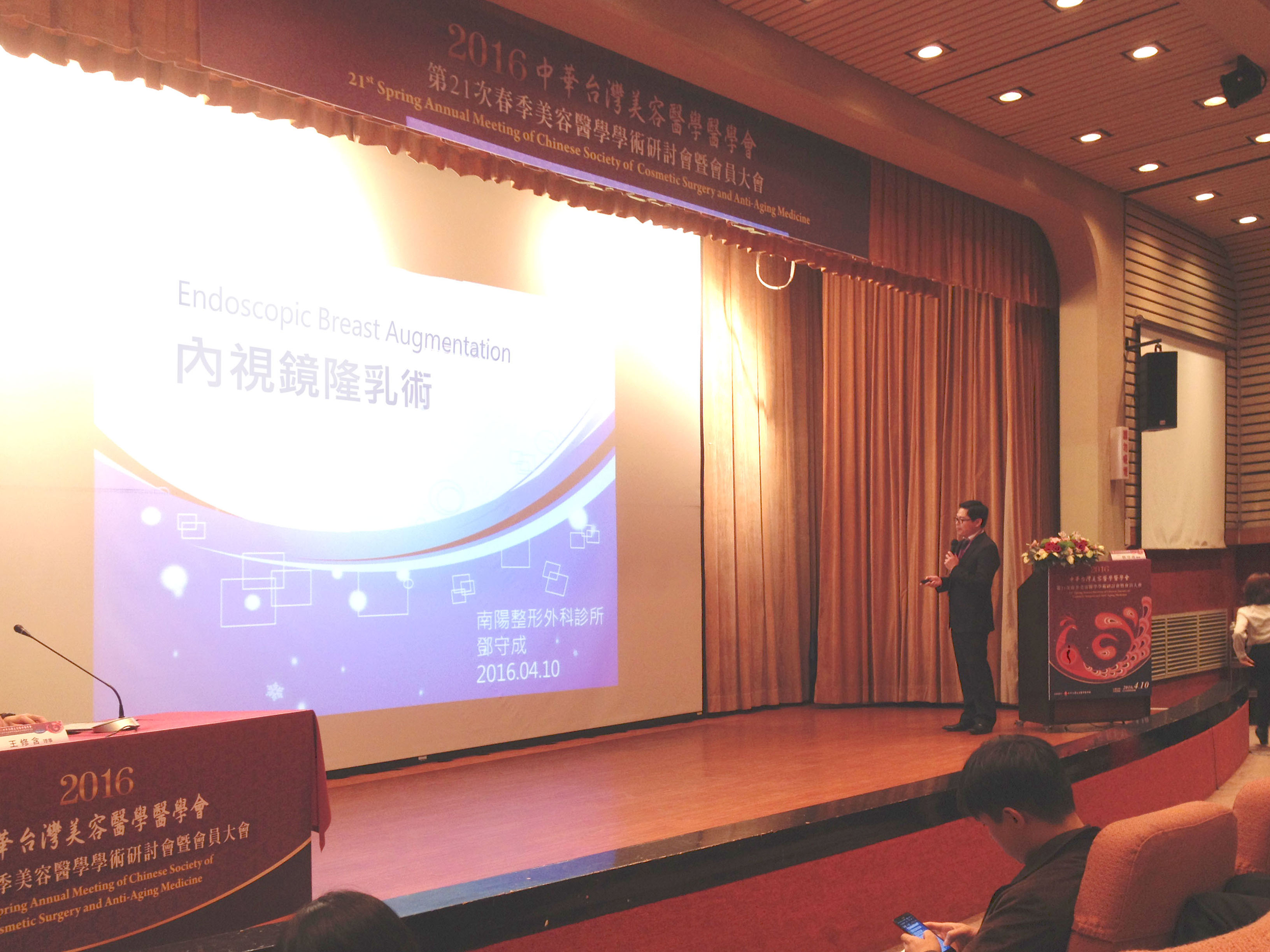 本院院長鄧守成醫師於2016年4月10日受邀擔任2016年春季美容醫學學術研討會講師,