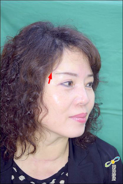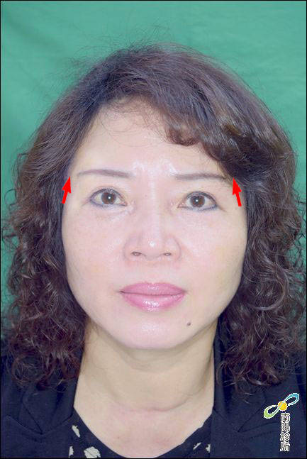 半側臉也明顯看出術前術後眉尾高度的明顯差異,