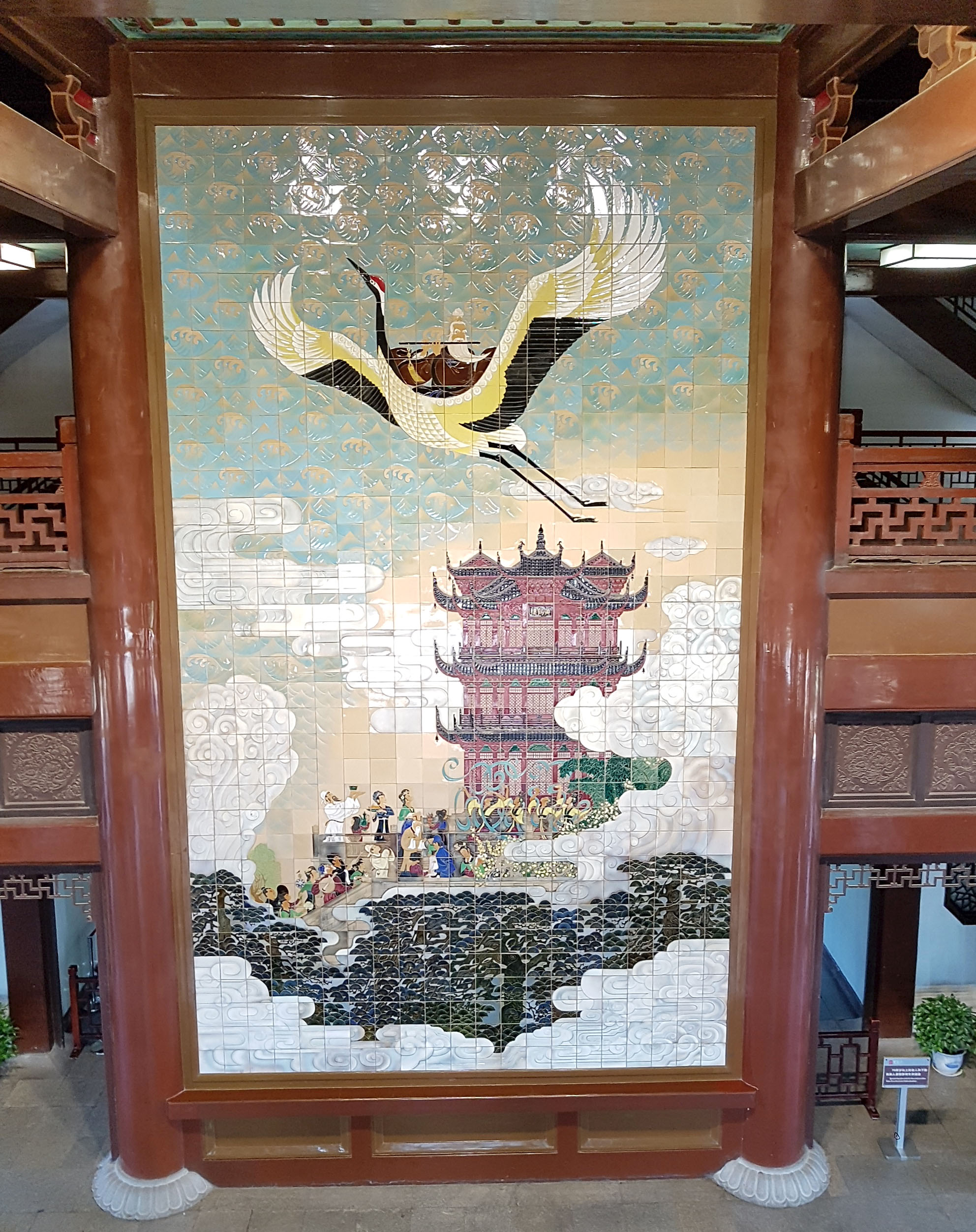 第一層大廳的正面牆壁,是一幅以「白雲黃鶴」為主題的巨大陶瓷壁畫。