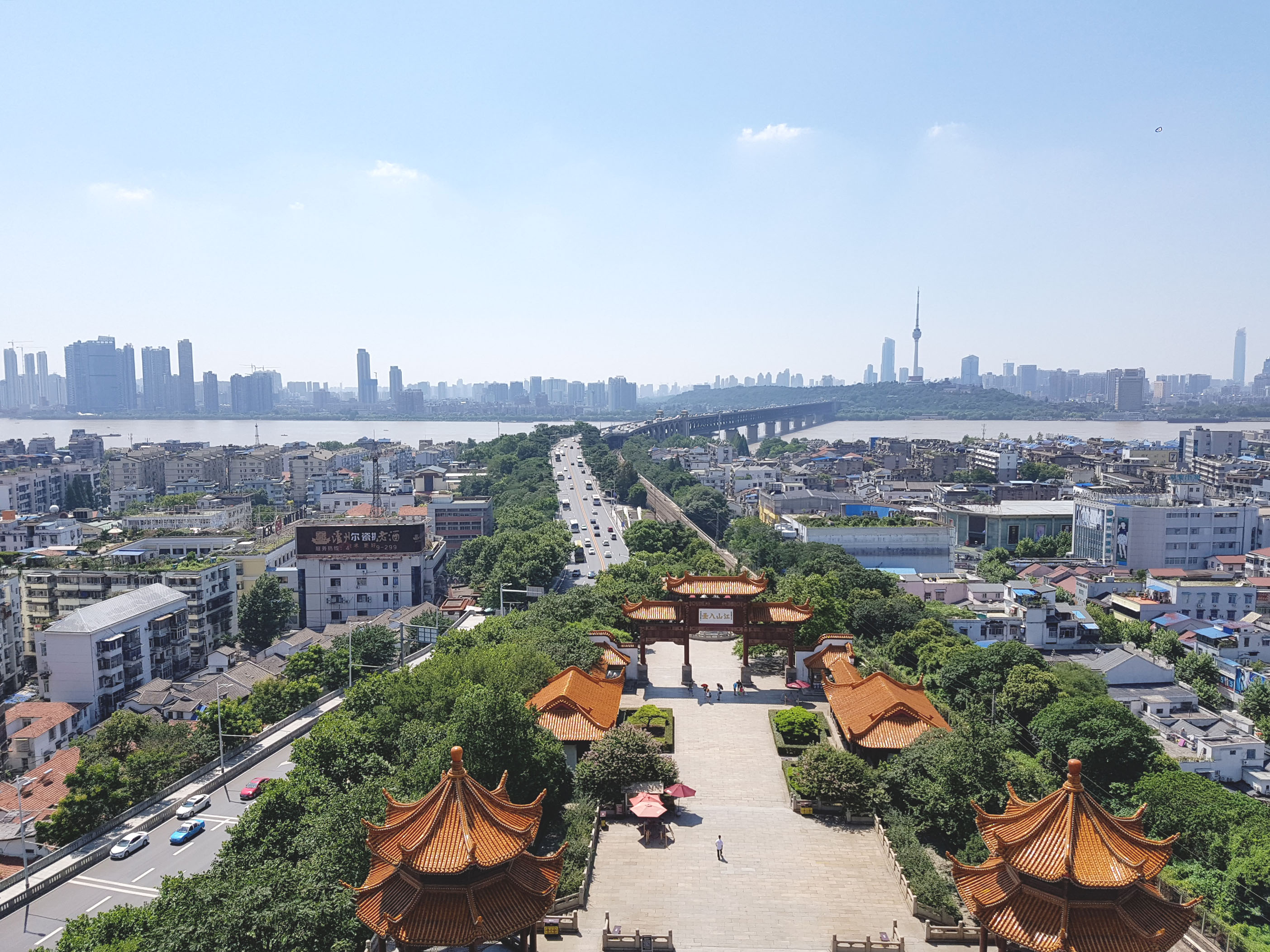 立於黃鶴樓之上,登高遠眺長江壯闊美景,頓覺心情開朗,
