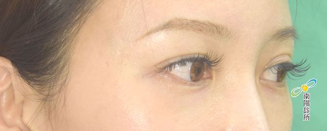 ↑上眼皮修補搭配縫雙眼皮手術,使她的雙眼更有神,更亮眼。*