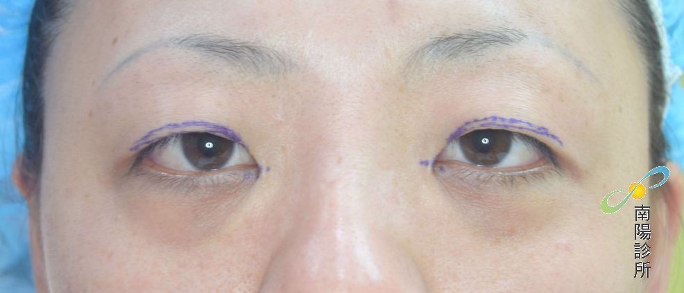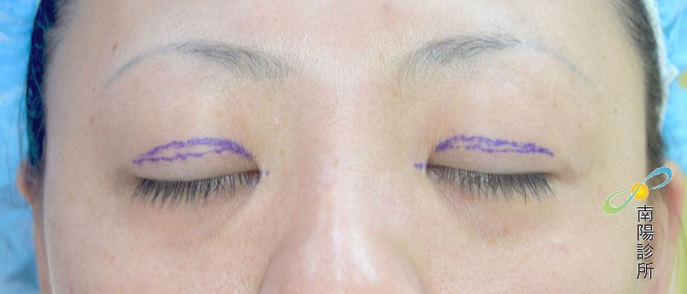 ③使用外科手術專用畫線筆,在眼皮整形部位畫上記號