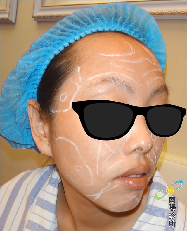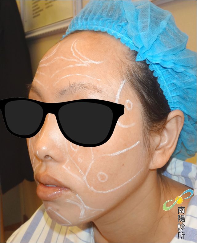 ↑鄧醫師為全臉自體脂肪移植的手術客人畫線,做術前外科手術記號。