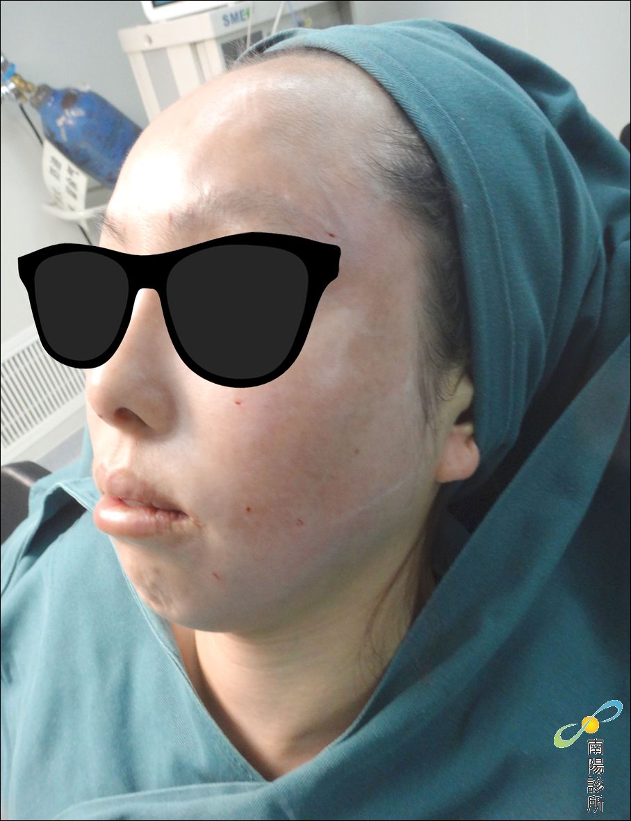 ↑在手術台上拍攝的術後記錄,可見其肌膚光滑彈潤,傷口極小。