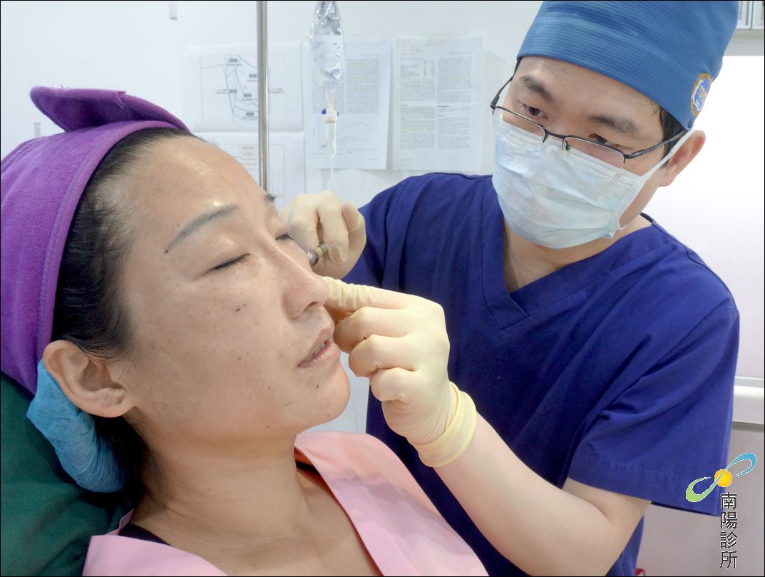 ↑鄧醫師正在為Iris注射填補經過離心純化後的脂肪,注入蘋果肌