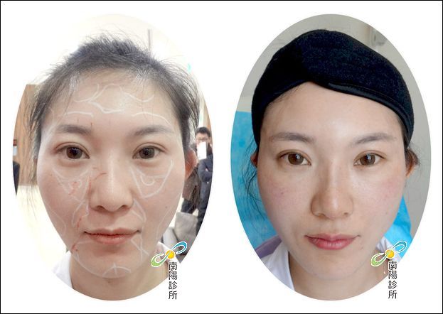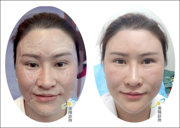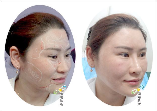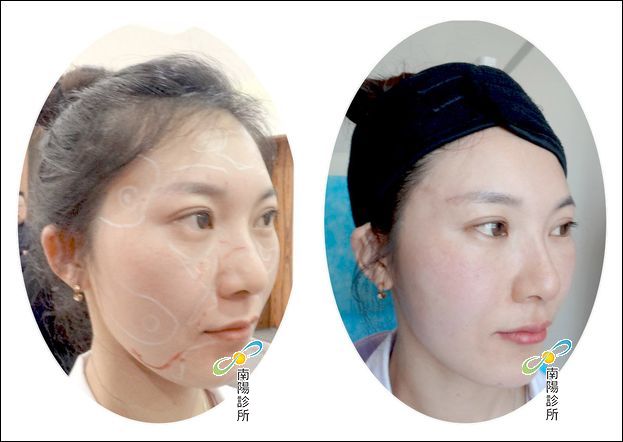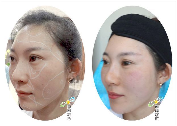 ↑桃心美人/臉部雙心美學注射示範model之Before&After比對照