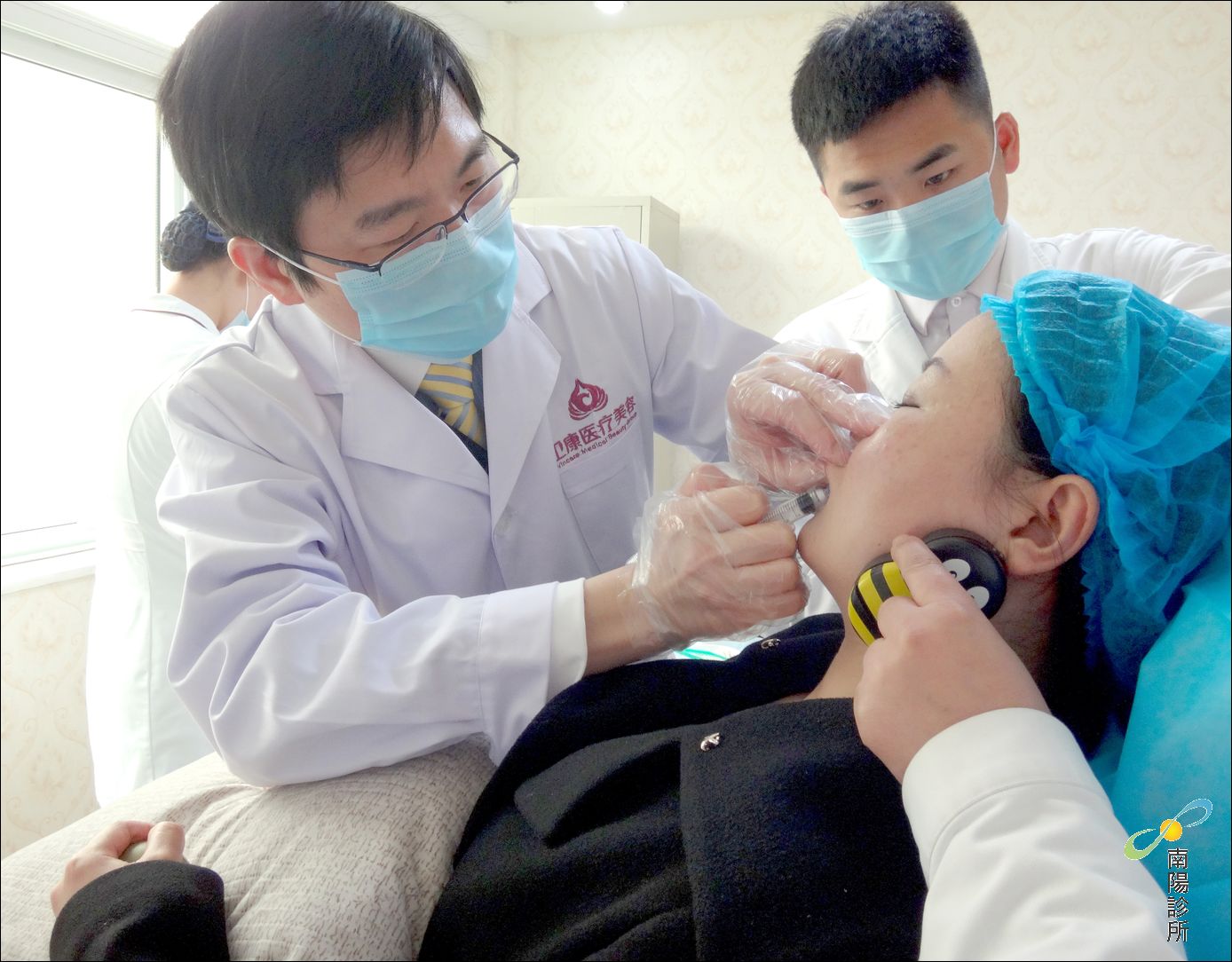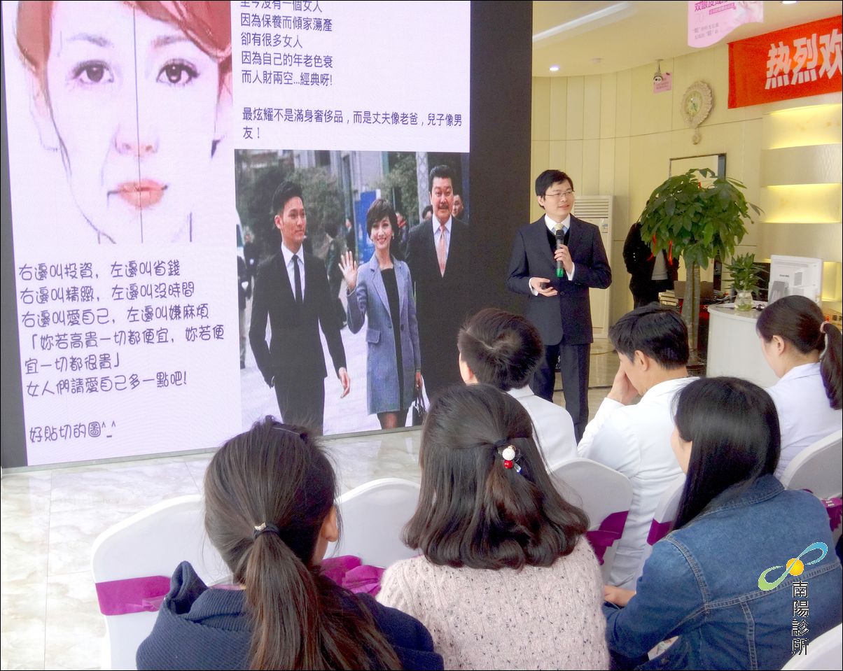 ↑山東省臨沂衛康整形醫院的醫師們認真專注地向鄧醫師學習玻尿酸之注射技巧
