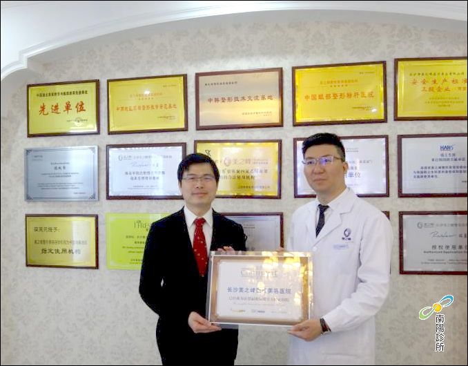 ↑長沙美之峰整形醫院院長頒發感謝狀予鄧守成醫師。